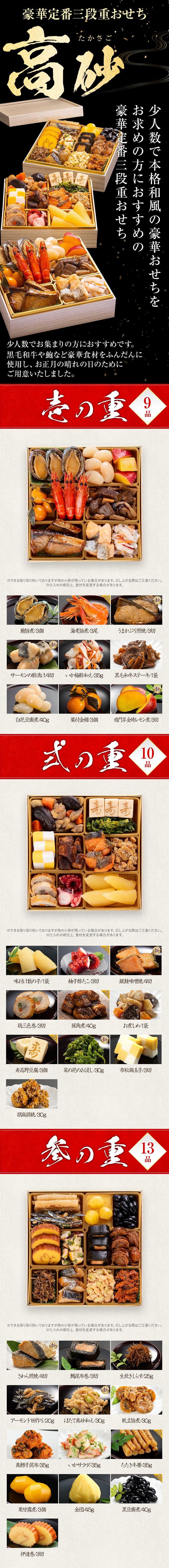 【数量限定★700円OFFクーポン】豪華定番三段重おせち 『高砂』 2~3人前 2026年新春おせち料理 配達日時指定可 【送料無料】【12月28日~31日お届け】