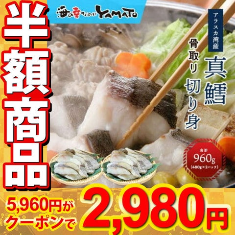 【50%OFFクーポン付】真鱈の“骨取り”切り身 960g(480g×2袋) 35-55gの切身が10切入前後 タラ たら 骨なし 惣菜