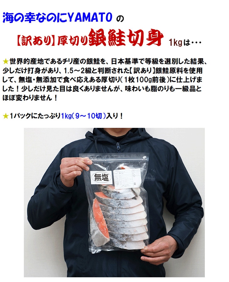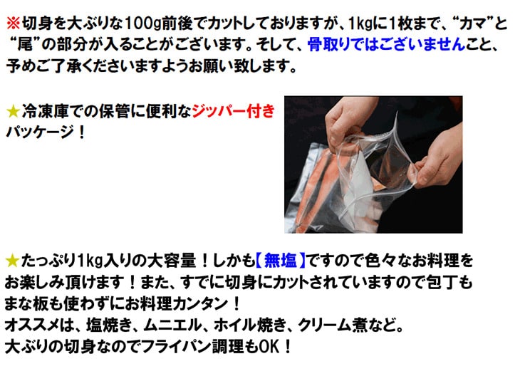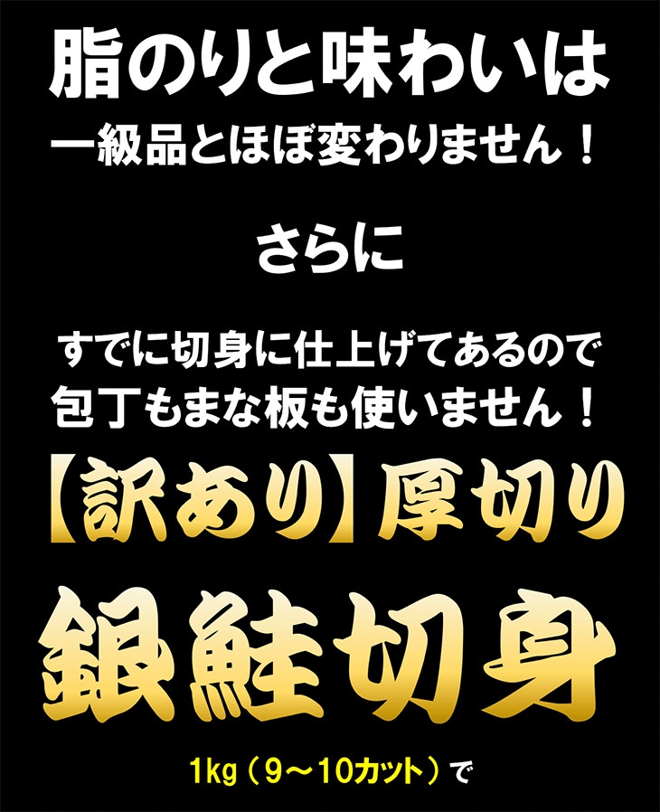 【50%OFFクーポン付】【無塩・無添加】少しだけ訳あり銀鮭切身1kg サケ さけ 鮭 銀鮭 切身 厚切 おかず お弁当 おつまみ お歳暮
