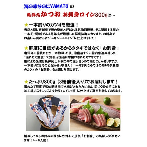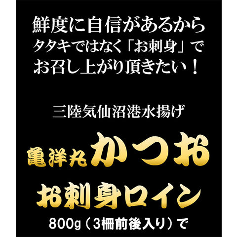 三陸気仙沼港水揚げ 亀洋丸かつお お刺身ロイン 800g (3柵前後入り) かつお カツオ 国産 おかず おつまみ 父の日 母の日 敬老の日 プレゼント 贈答 お中元