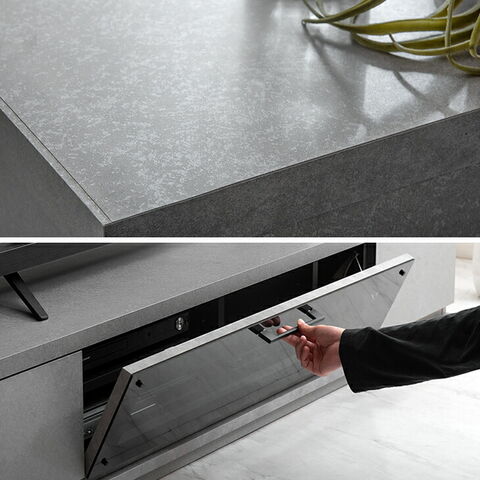 | 前板・天板:ポリエステル化粧繊維板(ブラック・ホワイト)、含浸紙化粧繊維板 (ウォールナット・ライトオーク)、 強化紙化粧繊維板 (セラミックグレー) フラップ扉:4ミリ厚強化ガラス 側板・背板・扉内:プリント化粧繊維板 |
