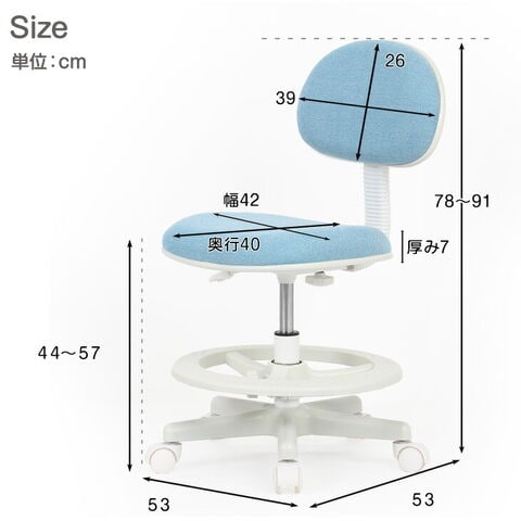 | 外寸:幅53×奥行53×高さ78-91cm 座面高:約44-57cm |