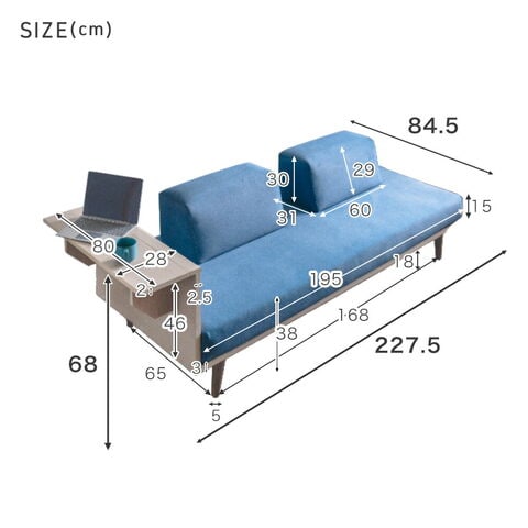| サイズ | 外寸:幅199.5×奥行84.5×高さ68cm 座面高:38cm |