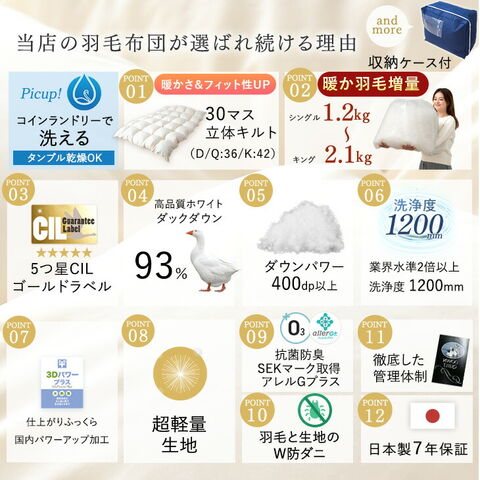 | 増量タイプ 日本製 羽毛 掛け布団 仕様 |