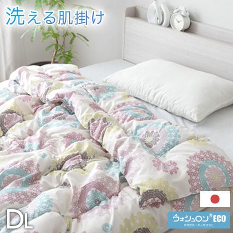 【即納】 日本製 洗える 肌掛け布団 ダブル ロング 帝人 ウォシュロン綿 ピーチスキン加工 布団 10119098〔ピンク【花柄】〕