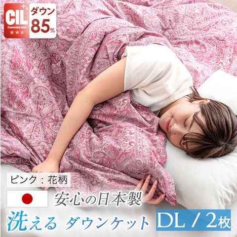 【2枚組】 日本製 洗える 羽毛肌掛け布団 ダブル 2枚 ダックダウン85% 30マス 立体キルト 肌掛け布団 ダウンケット 羽毛布団 掛け布団 肌布団 除菌 防臭 夏用 夏布団 国産 10119468〔ピンク:花柄〕