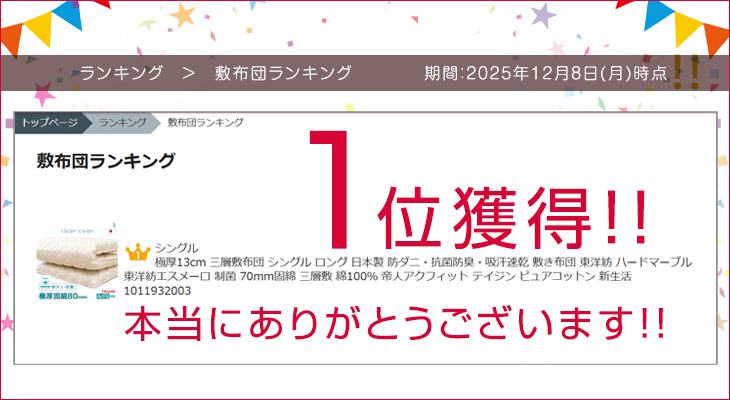 ランキング1位 極厚13cm 三層敷布団 シングル 日本製 防ダニ・抗菌防臭・吸汗速乾 敷き布団 東洋紡 ハードマーブル 東洋紡エスメーロ 制菌 70mm固綿 三層敷 綿100% 帝人アクフィット テイジン ピュアコットン 新生活 1011932003