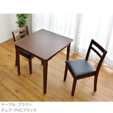 【即納】 ダイニングテーブルセット 3点セット 2人用 75cm×75cm 北欧 11719137〔【テーブル】ブラウン×【チェア】PVCブラック〕