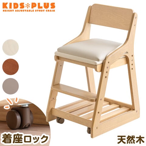 【即納】 座った瞬間キャスターロック 学習チェア 天然木 高さ調節 着座ロック デスクチェア クッション 学習椅子 ランドセル 収納 木製 足置き 子供 リビング学習 1171914421〔ナチュラル×アイボリー〕