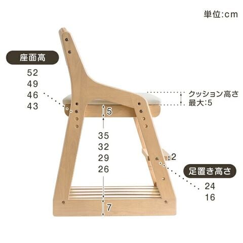 ・成長に合わせて高さ調節OK [座面:4段階/足置き:2段階] ・座った瞬間LOCK!着座ロックキャスター ・ランドセルも置ける収納ラック ・ぬくもり感じる天然木 ・お子様に安心の低ホルF★★★★塗装 |