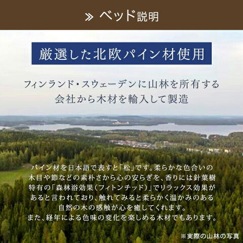 | 本体・脚:天然木パイン無垢材 すのこ:LVL(厚み12mm) ラッカー塗装 ※傷防止フェルト付属 |