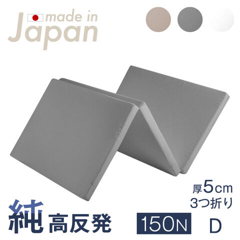 国産 純高反発 マットレス ダブル 5cm 三つ折り 高品質 硬め 150N 日本製 高反発 ウレタンマット ウレタン ベッドマットレス ベッドマット マット 3つ折り 折りたたみ 折り畳み 固め 厚め 厚手 軽量 23300039 〔グレー〕