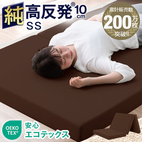 【即納】 第1位 マネできない品質「純」高反発(R) 全部洗える マットレス 安心エコテックス セミシングル 三つ折り 10cm 密度25D 190N 折りたたみ 高反発マットレス 43300142〔ブラウン(メッシュ)〕