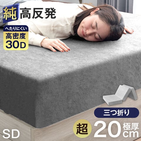 超極厚20cm 「純」高反発(R) マットレス セミダブル 三つ折り へたりにくい 高密度30D 硬め 230N 安心エコテックス 超低ホル 高反発マットレス 20cm厚 高反発マット 折りたたみ 折り畳み 洗える カバー 13810076〔グレー〕【予約】12月中旬※12/20までに出荷予定