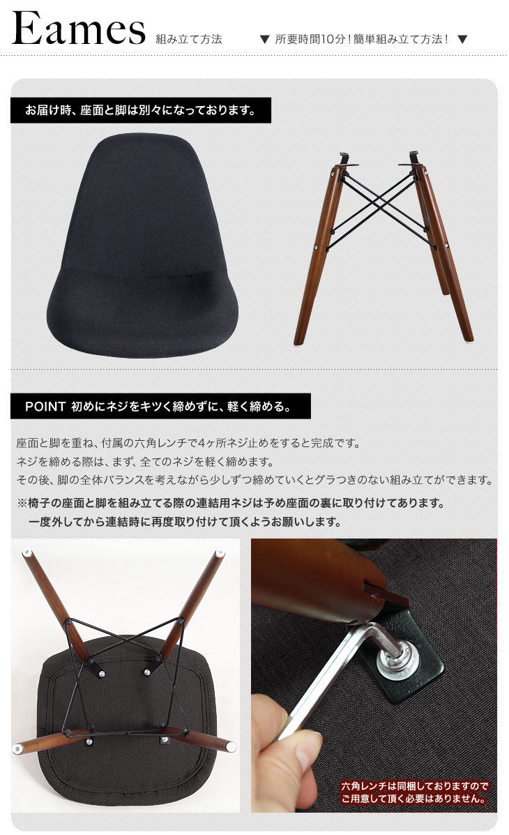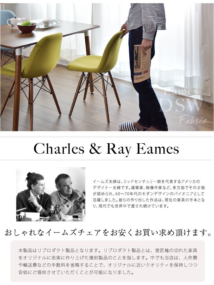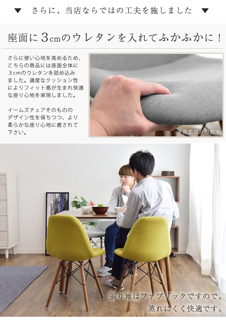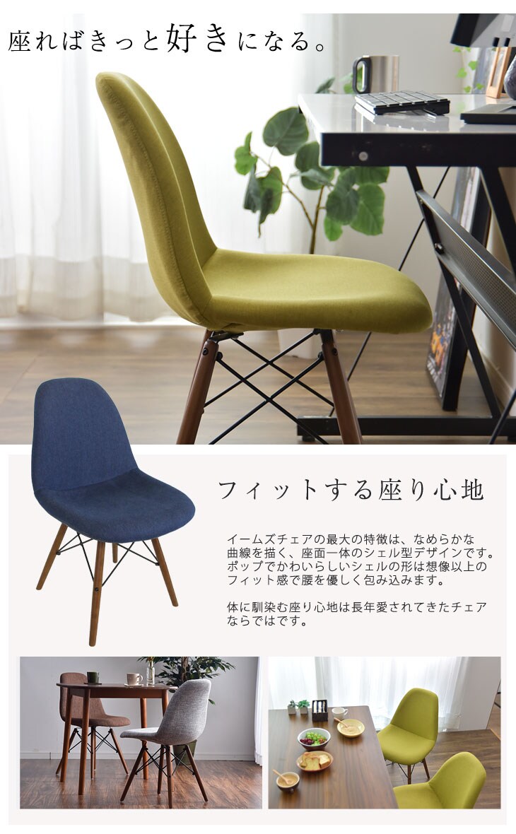 | ・イームズシェルチェアDSWにファブリックが登場! ・長時間座っていても蒸れにくいファブリックの張り地 ・スタイリッシュなデザイナーズチェア ・デザイン性の高い木脚を採用 ・おしゃれで体に良く馴染む曲線を描く座面 ・座り心地の良いふかふかウレタンクッション ・所要時間10分!重ねて締めるだけで簡単組立 |