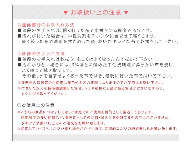 | 【中国製】 ※商品の寸法はロットによって、ご使用に差し支えのない程度の多少の誤差がある場合がございます。予めご了承下さい。 ※配送は全て宅配便(1人)での玄関渡しとなります。大型商品や重量商品、エレベーターの無い2階以上にお住まいのお客様は、玄関口までの搬入をお手伝いをお願いしております事をご了承ください。 ※こちらの商品につきましてはご家庭でのご使用を目的として製造しております。使用頻度の多い店舗など、業務用としての品質・耐久性を保証するものではございません。予めご了承頂いた上でのご注文をお願い致します。 ※使用していくうちにネジが緩む場合がございます。定期的なネジの締め直しをお願い致します。 ※生地の色味は、お部屋の光源によって見え方が多少異なる場合がございます。予めご了承下さい。 ※デニム生地は、ご使用を続けると色落ちにより色味が変化する場合がございます。素材特有の特徴になりますので、ご了承下さい。 |