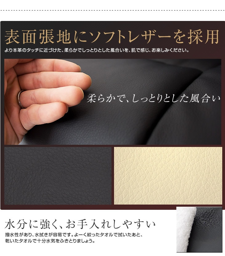 | 【張り地】 表面:ソフトレザー 側面・裏面:PVC 【内部】 ウレタンフォーム 【脚部】 スチール(PVC張り) |
