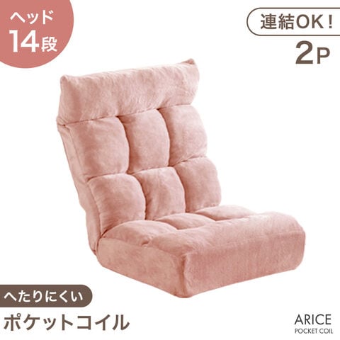 【即納】 【2P】 連結OK へたりにくい ポケットコイル 座椅子 14段階 ヘッドギア付き ハイバック 極厚 1人用 リクライニング コンパクト 折りたたみ おしゃれ かわいい 北欧 99901013〔ペールピンク〕