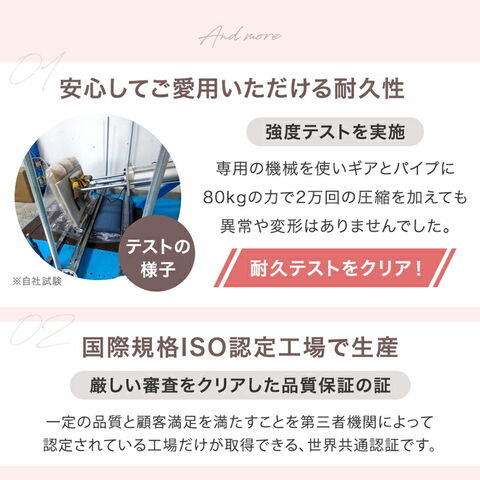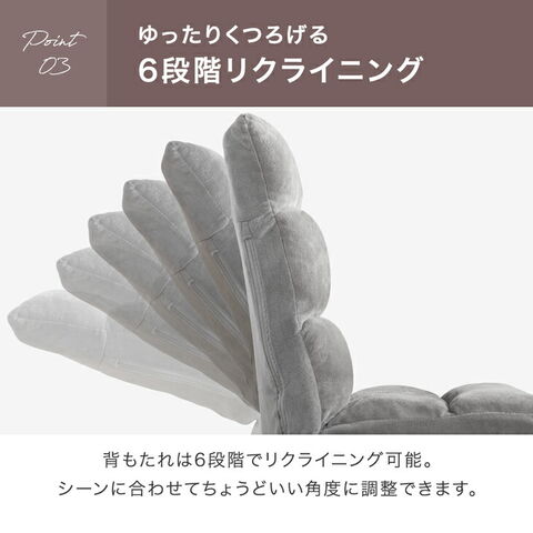 ・耐久性に優れたポケットコイル座面 ┗ほどよい弾力で、ふんわりとした座り心地 ・あらゆる姿勢にフィットする4層構造 ・お好みの角度に設定可能 ┗背もたれ6段階 ┗ヘッド14段階 ・並べて使える連結シート付き ・肌触りの良いマイヤー生地 ・大人かわいいニュアンスカラー ・折り畳み収納OK ・フレームは2万回の耐久性テストに合格 |