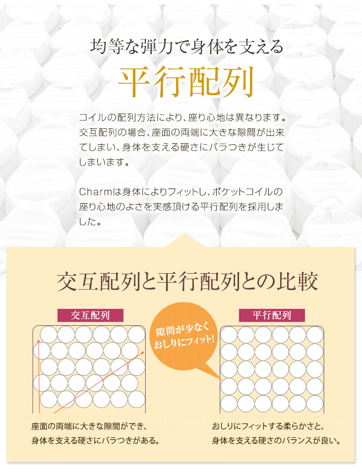 | 表地・裏地:ポリエステル100% ポケットコイル(16個)、クッション材(ウレタンフォーム) スチールパイプ |