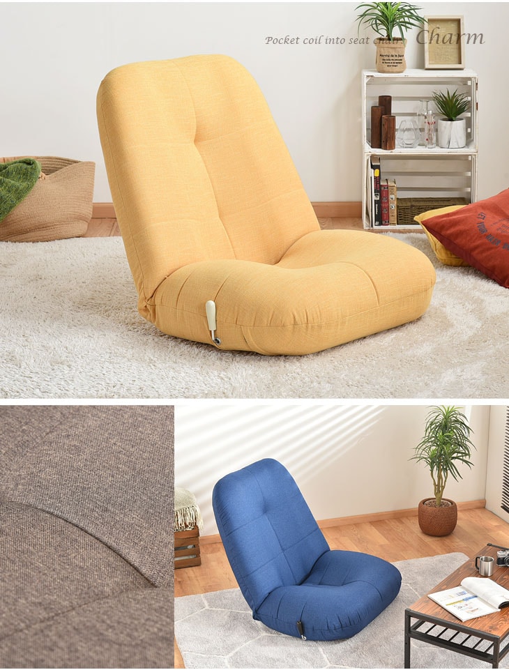 BIG ポケットコイル 座椅子 あぐら座椅子 無段階 リクライニング チェアー レバー式 座いす おしゃれ コンパクト リクライニングチェア 16210001 〔グレージュ〕【予約】1月中旬※1/20までに出荷予定
