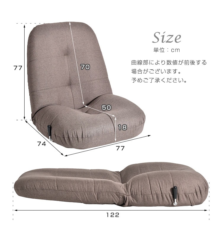 | 外寸:幅77x奥行74?122x高さ77cm 座面:幅77x奥行50×高さ約18cm 重量:約11kg |