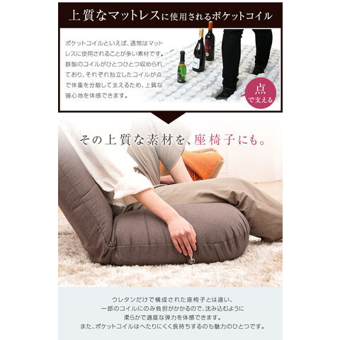 【即納】 BIG ポケットコイル 座椅子 あぐら座椅子 無段階 リクライニング チェアー レバー式 座いす おしゃれ コンパクト リクライニングチェア 16210001 〔グレージュ〕