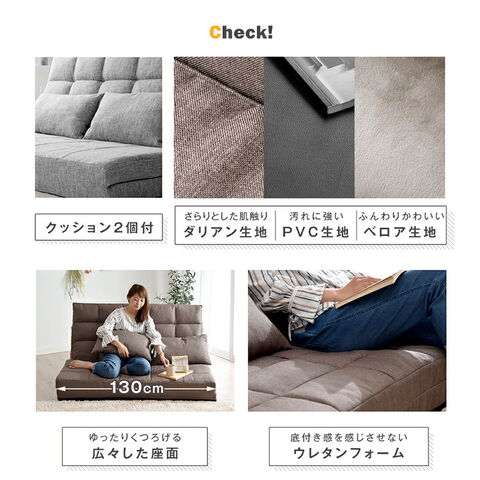 | ・3つのスタイルで使える3wayソファベッド ・背もたれは14段階調節でお好みの角度に設定可能 ・頭までしっかり支えるハイバック ・同色クッション2個付き ・ローテーブルと合わせやすいロータイプ |