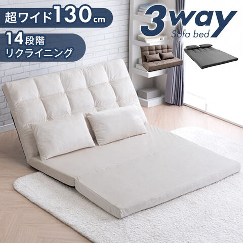 シーンで変える3way!ソファーベッド 幅130cm 2人掛け コンパクト ゆったり リクライニング ローソファー ソファー ソファ ソファベッド リクライニングソファー 折りたたみ フロアソファー 1521005221〔ミルクアイボリー〕【予約】3月下旬※3/31までに出荷予定