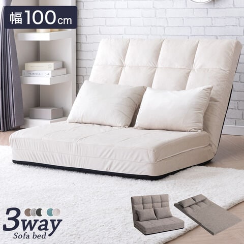 3way ソファベッド コンパクト 幅100cm 2人掛け ハイバック リクライニング ソファ ローソファ フロアソファ ソファベット リクライニングソファ ソファー 15210054 〔ミルクアイボリー〕【予約】1月下旬※1/31までに出荷予定