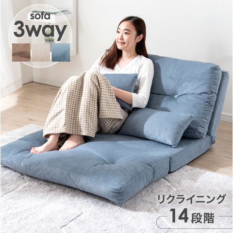 【即納】 3way コーデュロイ生地 ソファベッド 幅90 リクライニング ローソファ 座椅子 こたつ用 1.5P ゆったり1P ソファー ソファ ベッド カウチソファ ベッド フロアソファ 15210070 〔ブルー〕