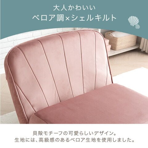 オトナかわいい シェル型 3way ソファベッド 幅89cm 日本製 ベロア コンパクト リクライニング ソファ ローソファ フロアソファ リクライニングソファ ソファー フロアソファー 1人掛け 座椅子 かわいい 44030042〔ペールグレー〕