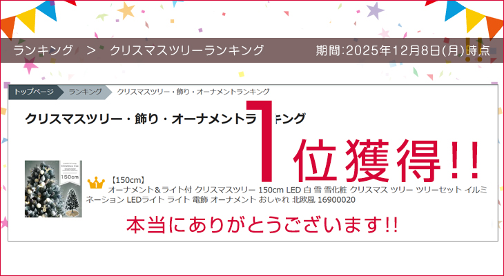 【即納】 ランキング1位 オーナメント&ライト付 クリスマスツリー 150cm LED 白 雪 雪化粧 クリスマス ツリー ツリーセット イルミネーション LEDライト ライト 電飾 オーナメント おしゃれ 北欧風 16900020
