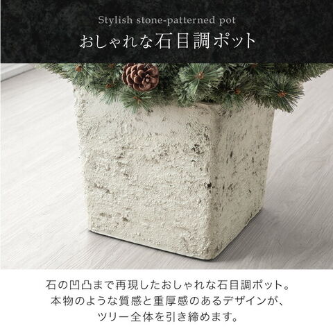 | 素材 | ツリー:PVC(塩化ビニル樹脂)、スチール、プラスチック ポット:プラスチック、石材混合 |