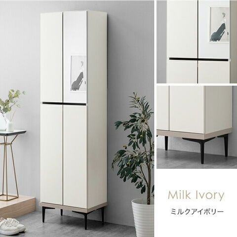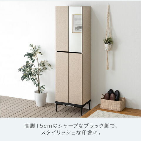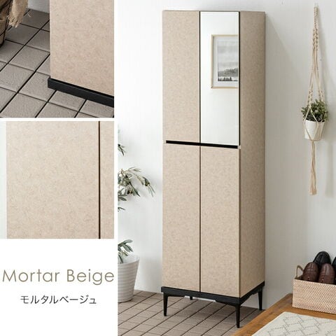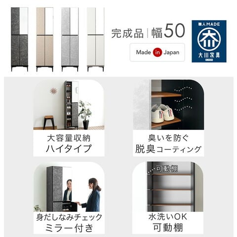 国産 完成品 シューズボックス ミラー付き 幅50 ハイタイプ 消臭機能付 姿見 大容量 洗える 可動棚 収納 靴入れ 靴箱 玄関収納 靴収納 下駄箱 シューズラック モルタル【超大型】 17010108〔モルタルベージュ〕