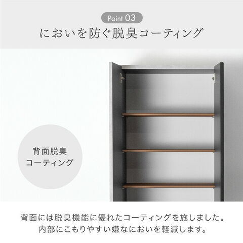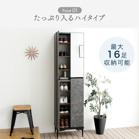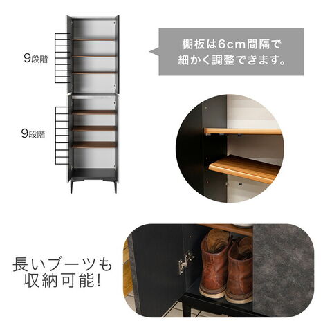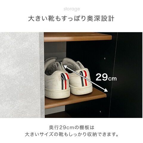 ・モダンで高級感あるモルタル調 ・ブラック脚がアクセントに ・内部の背面には靴の臭いを防ぐ消臭シート採用 ・砂や泥を簡単に洗える棚板 ・高さのある靴も収納できる可動棚 ・リビングの生活用品の収納としても ・日本一の家具産地 大川産 ・完成品でお届け |