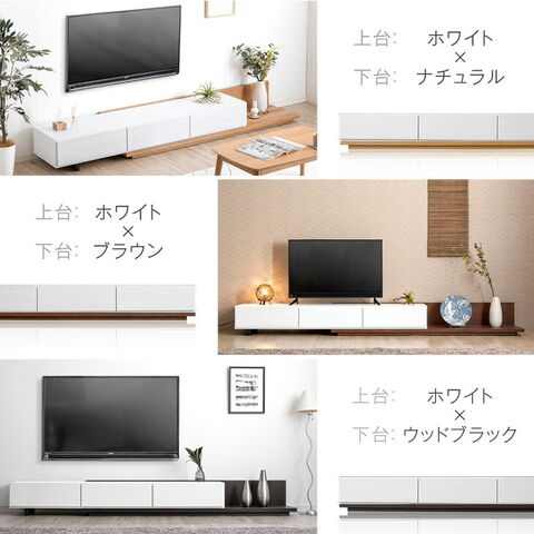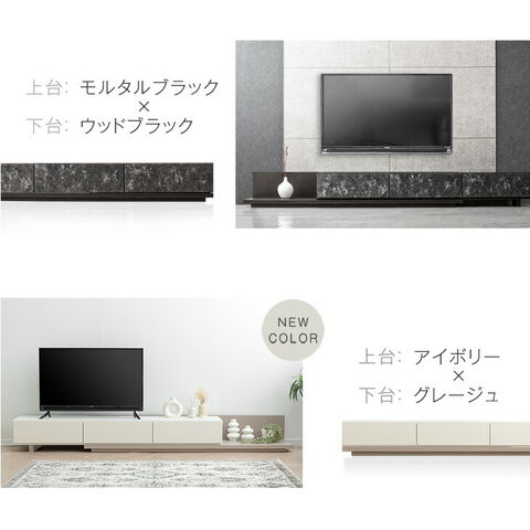 テレビ台 幅180cm-300cm 伸縮タイプ 国産 テレビボード テレビラック TV台 収納 【超大型】17100007〔上台:アイボリー×下台:グレージュ〕