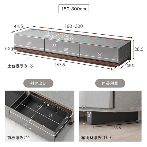 | 幅120~210cm └【外寸】幅120~210×奥行:約44.5×高さ:約28.5cm 幅180~300cm └【外寸】幅:約180~300×奥行:約44.5×高さ:約28.5cm |
