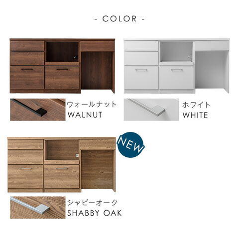 ・配置場所や使い方に合わせて自由に組み替えOK ・食器やストックをすっきり整頓 ・蓋付き家電の収納にぴったりなスライド棚 ・ゴミ箱収納にぴったりなオープン収納 ・中、下段フルオープンスライドレール ・日本一の家具産地 大川産 |