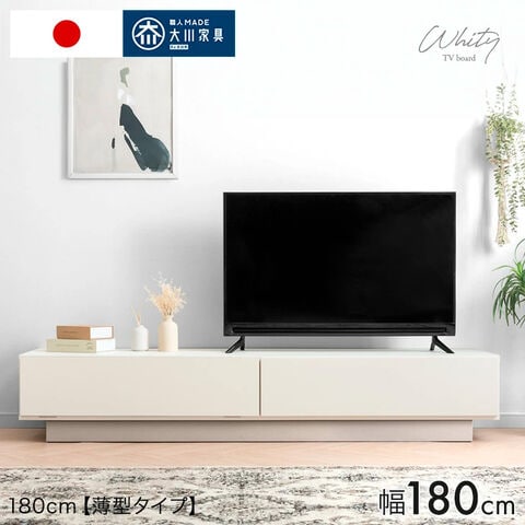 テレビ台 180cm 奥行31cm 薄型 完成品 日本製 大川家具 国産 ローボード ロータイプ テレビボード テレビラック TV台 TVラック 引き出し 収納 32インチ 42インチ 50インチ おしゃれ【超大型】17100093〔幅180cm/アイボリー×グレージュ〕