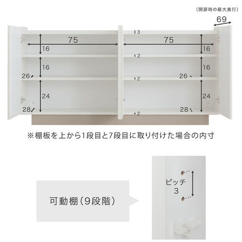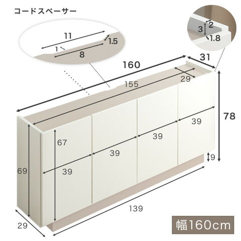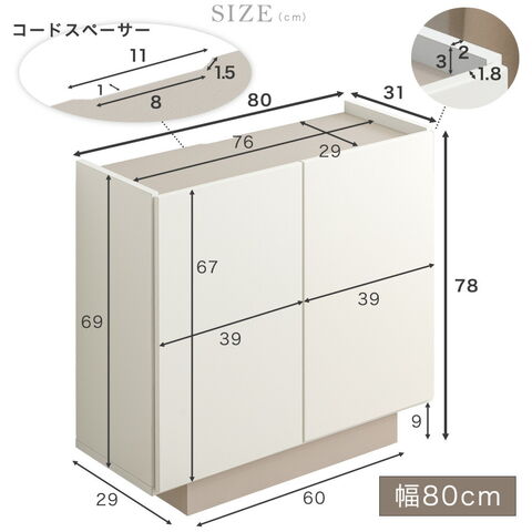 幅80cm:幅84×奥行36×高さ81cm 幅120cm:幅124×奥行36×高さ81cm 幅160cm:幅164×奥行36×高さ81cm |