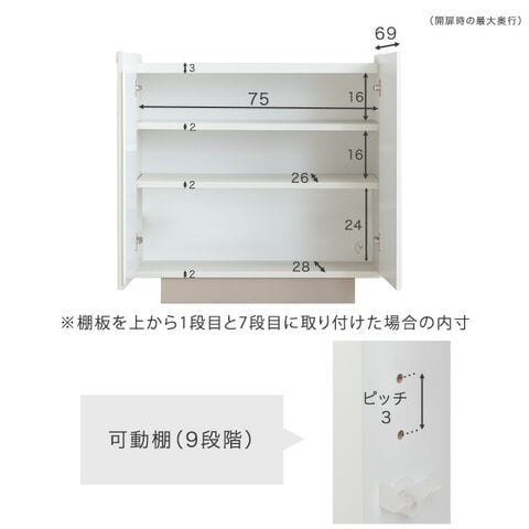 | 耐荷重 | 幅80cm:天板20kg、各棚5kg、底板5kg |