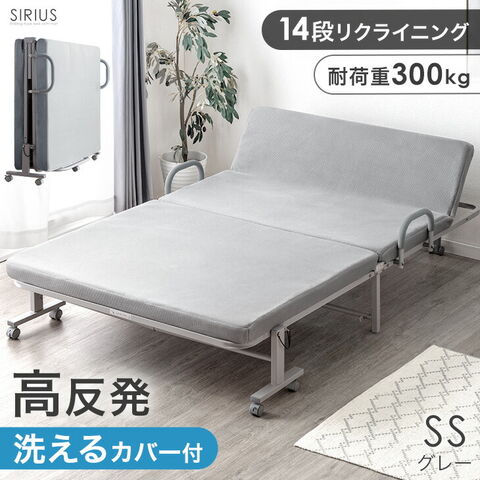 高反発 マットレス付き 折りたたみベッド セミシングル 洗える カバー 14段 リクライニング 折り畳み 介護ベッド 簡易ベッド キャスター 頑丈 コンパクト 17600149〔グレー〕【予約】1月中旬※1/20までに出荷予定