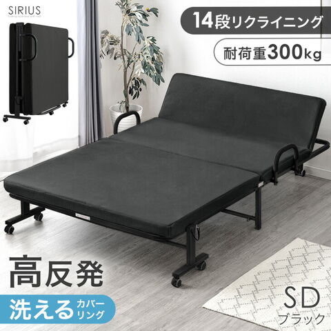高反発 マットレス付き 折りたたみベッド セミダブル 洗える カバー 14段 リクライニング 折り畳み 介護ベッド 簡易ベッド キャスター 頑丈 コンパクト 1760015120〔ブラック〕【予約】1月中旬※1/20までに出荷予定