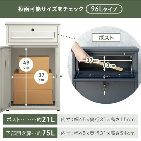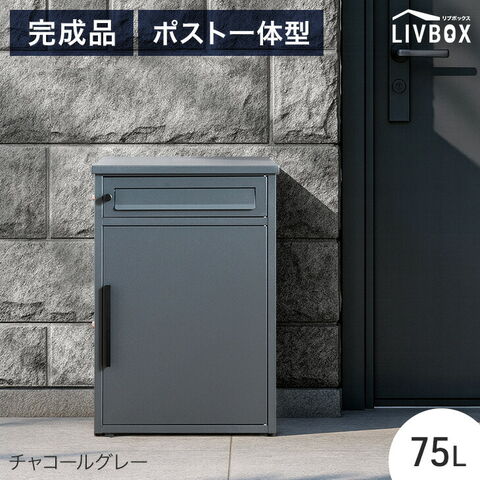 《完成品でお届け》 ポスト一体型 宅配ボックス 鍵付き 大容量 75L 宅配box 配達ボックス 置き型 置き配 防水 マグネット 屋外 一戸建て用 簡単 組み立て不要 93800001〔チャコールグレー〕【予約】6月上旬※6/10までに出荷予定