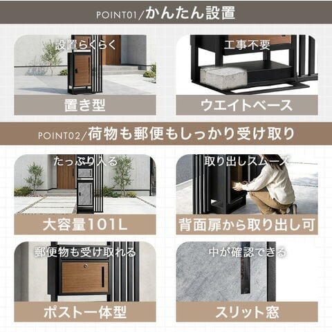 | 耐荷重 | 本体:約80kg ポスト:約5kg 宅配ボックス:約40kg |