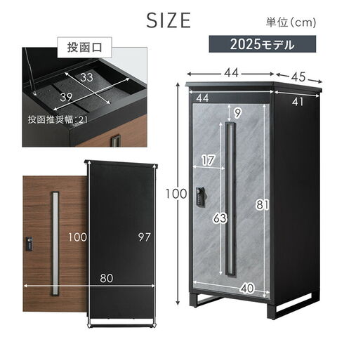 | サイズ | 【2025モデル】外寸:幅45×奥行44×高さ100cm 【2026モデル】外寸:幅50×奥行42×高さ94cm アンカーボルト施工時の穴サイズ(目安) 直径:約10mm 深さ:約70mm |