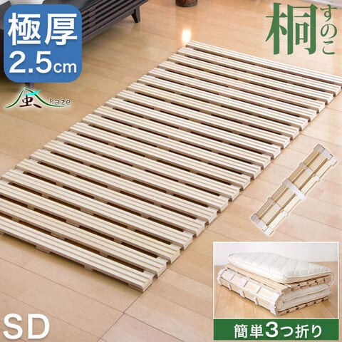 【即納】 極厚2.5cm ロール式 桐 すのこマット セミダブル 折りたたみ コンパクト セミダブルベッド 折りたたみベット すのこ マット すのこベッド ベッド 湿気 カビ 対策 除湿 スノコマット 17610008