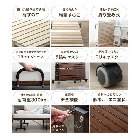 【即納】 桐すのこベッド シングルワイド 折りたたみベッド 桐 すのこ 33枚 キャスター シングルベッド 桐すのこ 折り畳み ベッド ベット すのこ すのこベッド 簡易ベッド コンパク 17610051