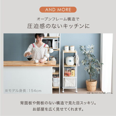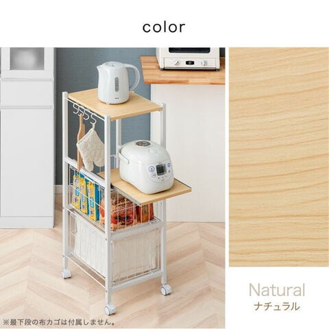 | ラック部、バスケット:スチール(粉体塗装)、天板・棚板:メラミン樹脂化粧繊維板、キャスター:PU |
